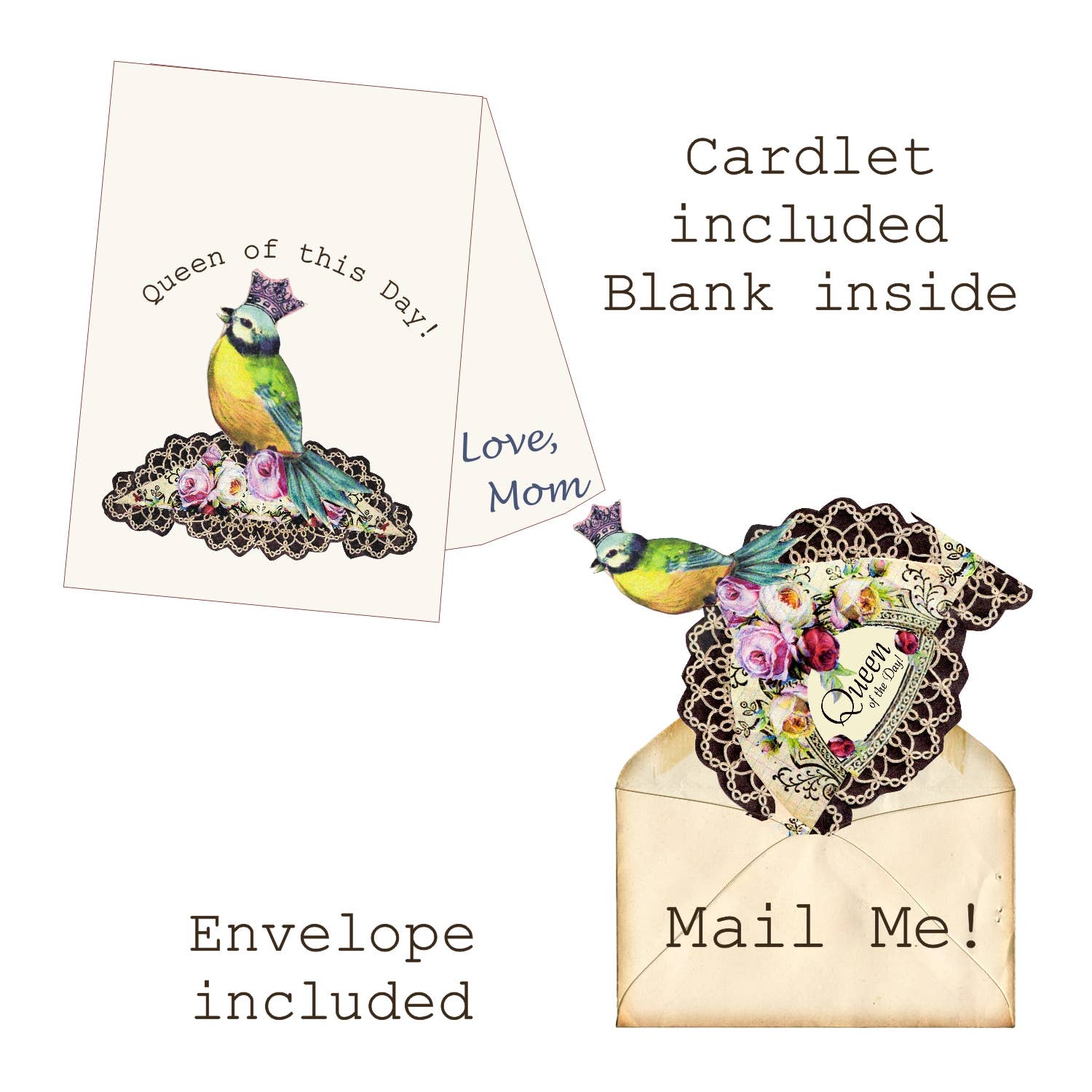 Greeting Card with Tiara, Queen of This Day, Songbird