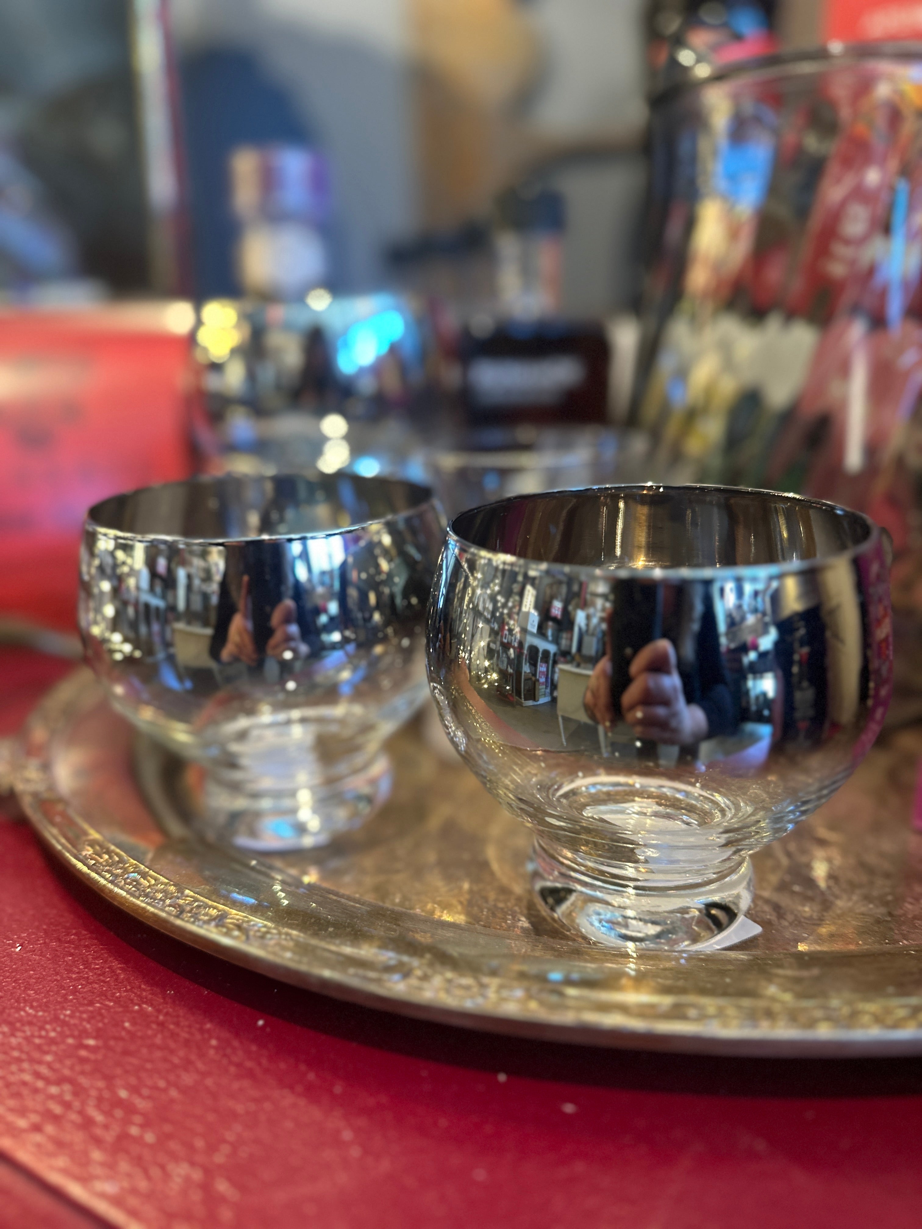 Vintage Silver Fade Wide Band Double Old Fashioned Glasses (Footed, priced individually)